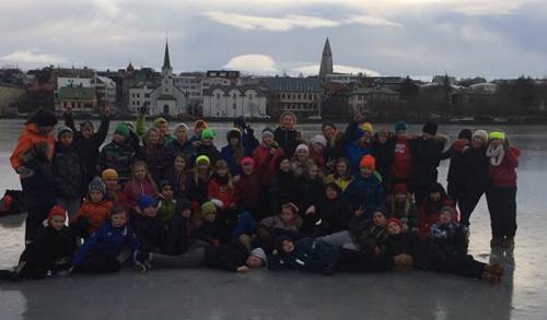 5.-6 bekkur notaði útikennsluna sína í gær til að hreyfa sig í tengslum við Lífshlaupið. Farin var bæjarferð á Reykjavíkurtjörn og spilað hokkí á klakanum.