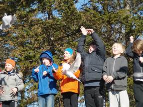 Bréfdúfur flugu frá skólanum