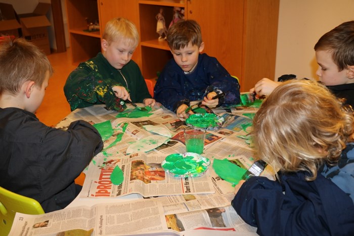 Krakkarnir hafa verið dugleg að æfa og þau hafa einnig búið til leikmuni.