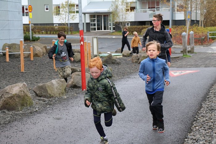 Eftir hádegi tóku svo allir þátt í Ólympíuhlaupi ÍSÍ þar sem nemendur hlupu einn eða fleiri hringi, en hver hringur var 2 km.