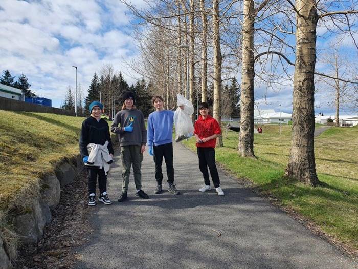 Nemendur í unglingadeild plokka rusl